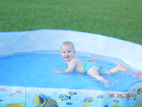 Somehow time got away from us for this morning nap so we had a early lunch and Lucas went down a t noon and slept til 2:30... He didnt like the hat so we didnt stay too long this morning on the swings... He just entertained me and himself with coloring,playing with the cars, balls, and thoses boxes..he didnt care about the plane. He was happy as a can be with the pool all to himself...I think it has a leak cause it was full to the top this afternoon..oh well they are on sell so I'll go pick 2 more up at store... They are such funny but had me going this morning before Pa-pa got up....Phewoooo.